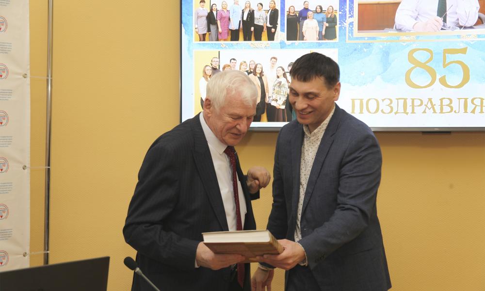 Со словами поздравления к В.А. Ильину обратились его коллеги: заведующий кафедрой менеджмента и инноваций СПбГЭУ д.э.н., профессор А.Г. Бездудная, депутат Вологодской городской Думы, заместитель Председателя Вологодской городской Думы А.В. Чуранов, директор Вологодского городского отделения РОР-СППВО К.А. Задумкин, заведующий Базовой кафедрой г. Вологды А.А. Колинько, заведующий отделом общественного здоровья по г. Вологде Р.А. Касимов, член Союза писателей А.В. Маклахов.