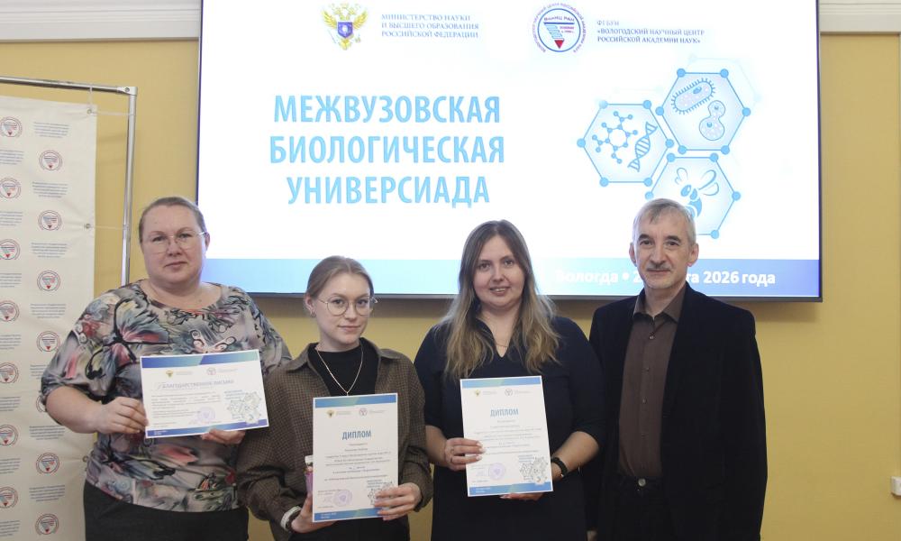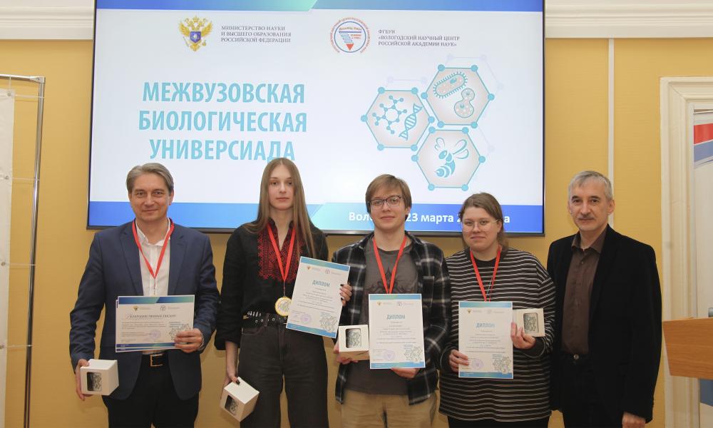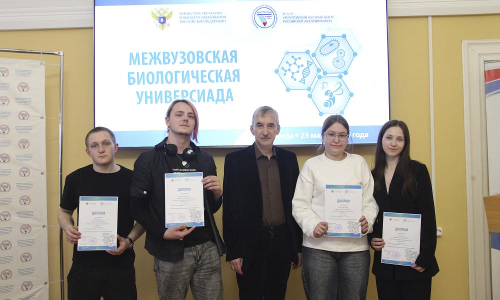 23 марта 2025 года в ФГБУН ВолНЦ РАН прошла VII Межвузовская биологическая универсиада. В текущем году она приобрела межрегиональный статус: к вологодским командам присоединились участники из Ярославля. Основная цель научного состязания – раскрытие творческих способностей и выявление потенциала будущих специалистов в прикладных вопросах биологии. В рамках мероприятия участники продемонстрировали умение вести дискуссию и знания в области биологии, экологии и сельского хозяйства.